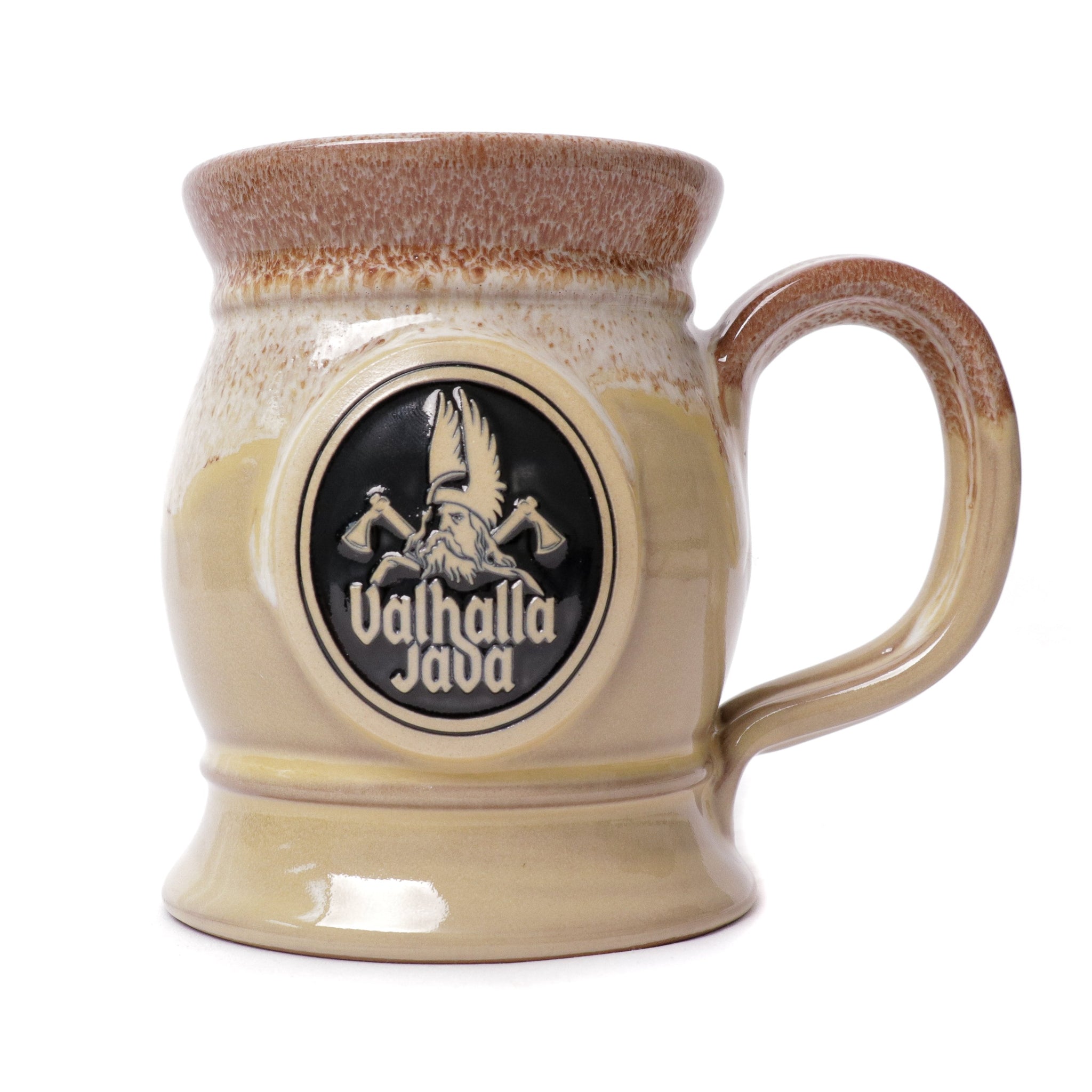 Prepare for any battle and prove you’re worthy of the Valkyries with our latest Valhalla Java mug. Crafted by our friends at Deneen Pottery, this gold on black Valhalla Java mug includes of our Viking Crest logo and holds 16+ ounces of coffee.
