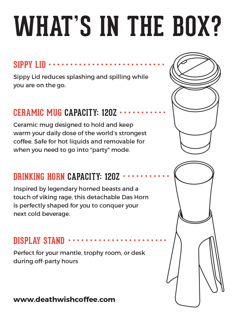 The Das Horn is here for all of your Viking-style coffee drinking needs. Use the ceramic top for hot coffee, and the horn attachment for cold beverages. The set also comes with a strap that goes around the horn so you can wear it with pride. Behold the power of the Das Horn!