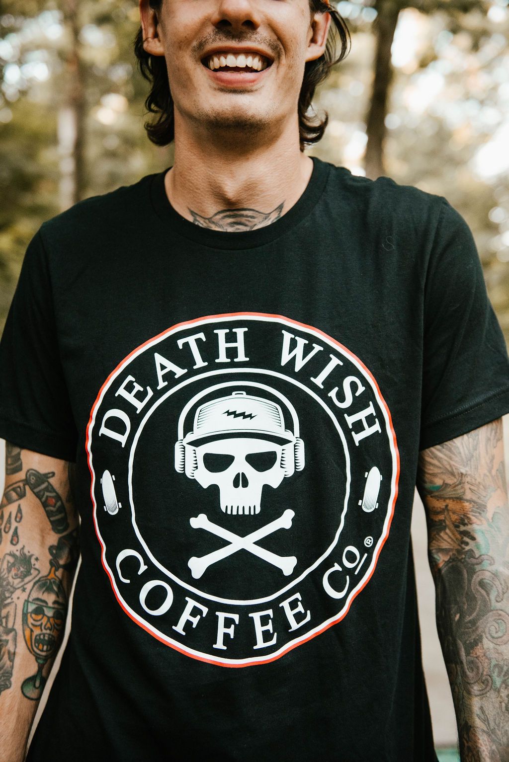 This T-shirt takes our traditional skull and crossbones logo and morphs it into a rad Sk8er who's ready to drink coffee and shred all day — who needs responsibilities, anyways?